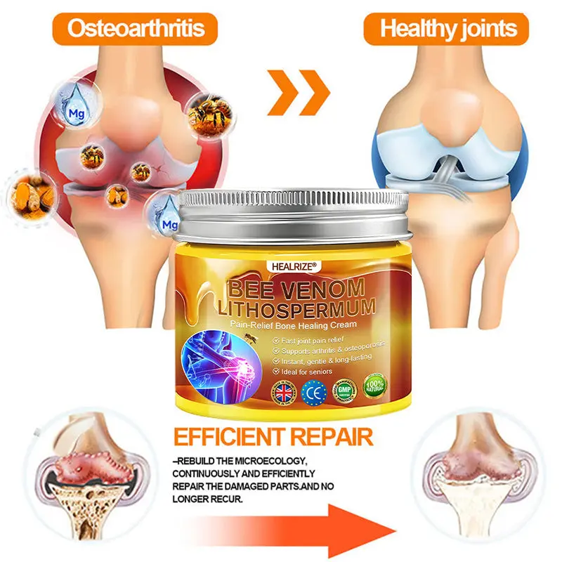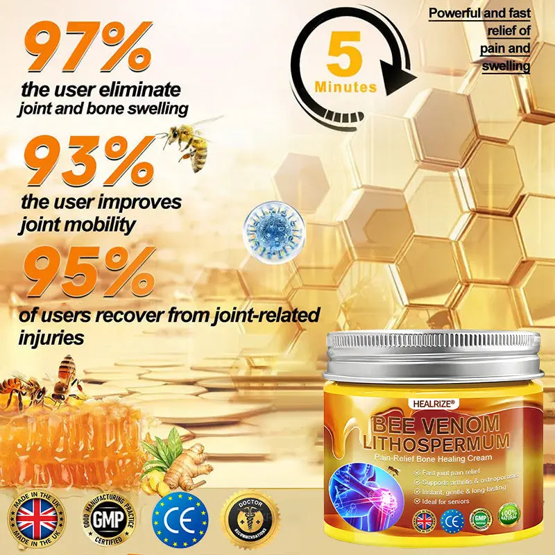 Healrize® BEE VENOM LITHOSPERMUM Pain-Relief Bone Healing Cream , meeting their high standards to effectively relieve pain and promote bone health. Approved by orthopedic doctors, it relieves pain within 5 minutes, restores joint mobility in 7 days, and significantly improves arthritis symptoms in 4 weeks. Choose our BEE VENOM LITHOSPERMUM Pain-Relief Bone Healing Cream and enjoy reliable results and a pleasant experience with confidence.