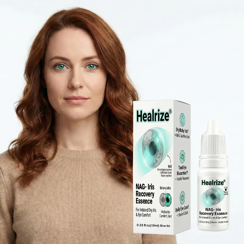 A: No, it is not a dye. Healrize® uses NAG (N-Acetylglucosamine) technology, a biological compound that naturally interacts with the melanocytes in your iris. It gently regulates melanin synthesis to lighten the pigment from within. This allows your eyes to develop a lighter, clearer, and more natural tone without the artificial “pixelated” look of contact lenses. - Q2: Is it safe to put in my eyes? What if I have sensitive eyes?