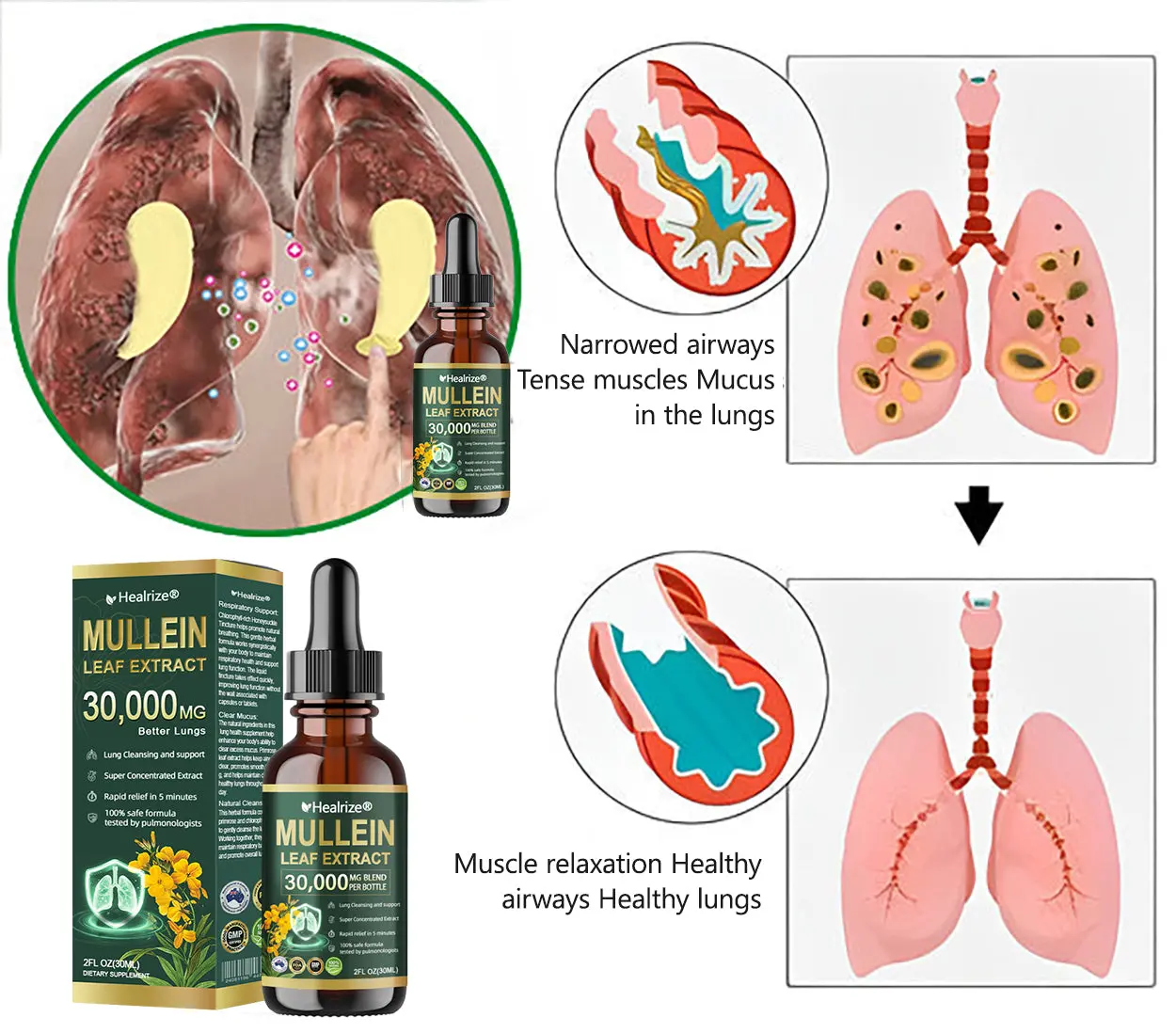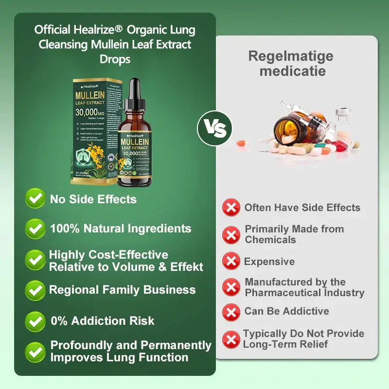 ใProfessionalใ Organic Lung Cleansing Mullein Leaf Extract Drops – Cleans trachea and lung residues – Repairs alveoli – Regenerates tracheal tissue – Combats allergies/asthma – Regains breathing smoothness – Assists in the treatment of chronic obstructive pulmonary disease (COPD)