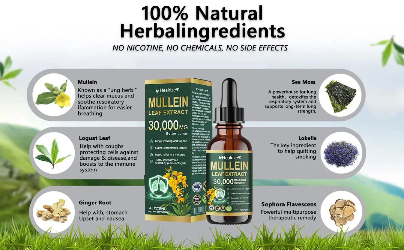 Healrizeยฎ Organic Lung Cleansing Mullein Leaf Extract Drops๏ผ1/2/4/6/10 JARS๏ผ