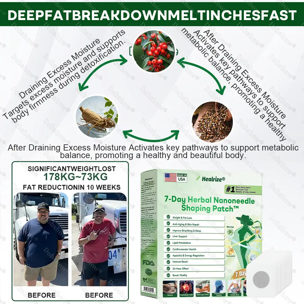 Healrize® 7-Day Herbal Nanoneedle Shaping Patch™ is developed using advanced Nano-Control Release™ technology and a clinically inspired Micro-Contact Absorption Layer™, designed for adults of all body types seeking visible contour support and metabolic balance.